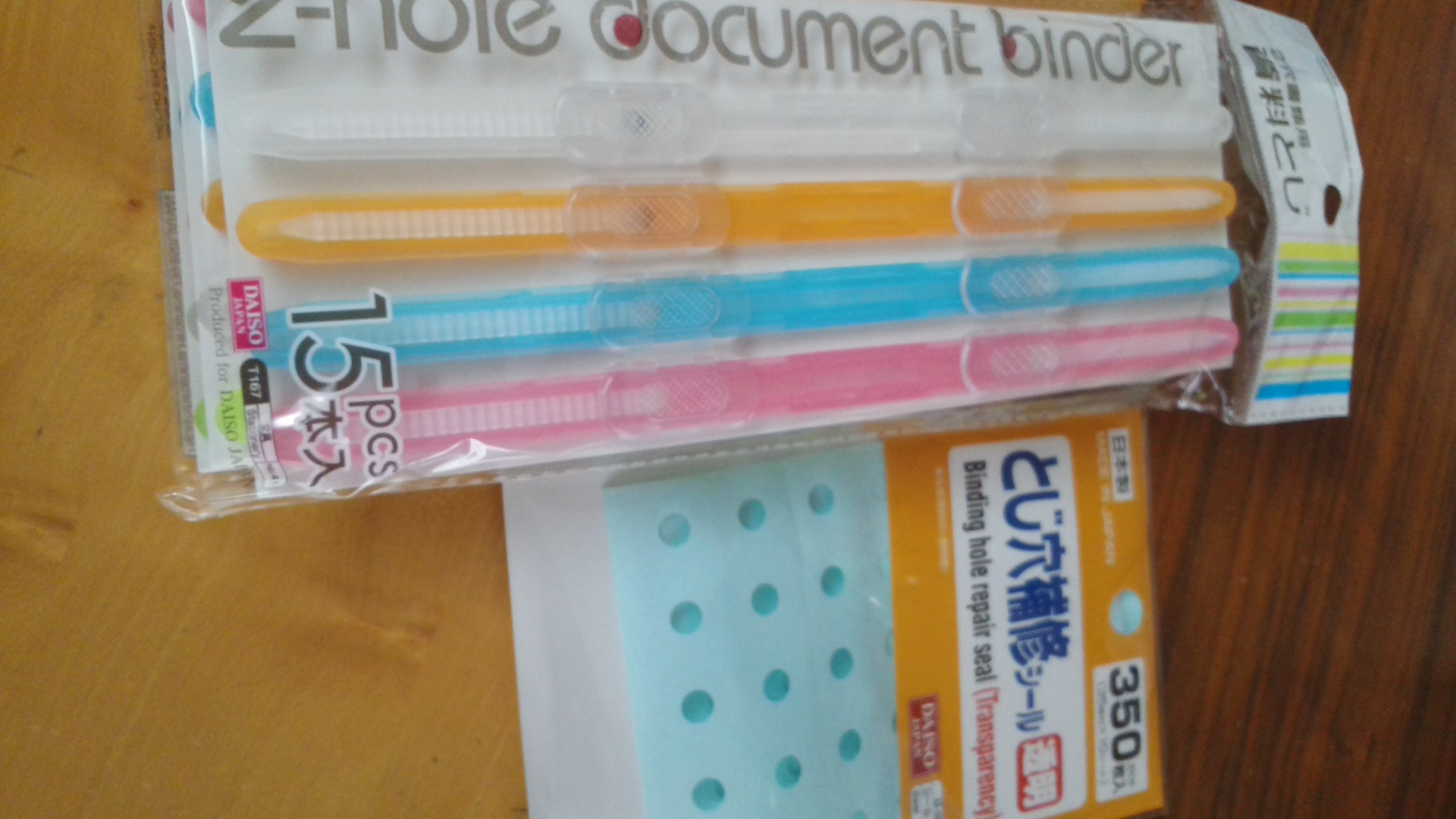 ➂2穴パンチで穴を開けて100均資料とじを通す
